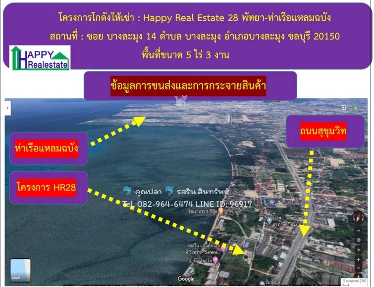ตั้งอยู่ที่ ซอยบางละมุง 14 ติดถนนสุขุมวิท ต.บางละมุง อ.บางละมุงจ.ชลบุรีเป็นศูนย์กลางของการขนส่งที่เป็นจุดแข็งบนเส้นทางสุขุมวิทที่สามารถเข้าถึงทั้งธุรกิจการท่องเที่ยวฝั่งพัทยาและอุตสาหกรรมการขนส่งฝั่งท่าเรือแหลมฉบังด้านหน้าโครงการติดถนนสุขุมวิทด้านหลังติดทะเลและชายหาด