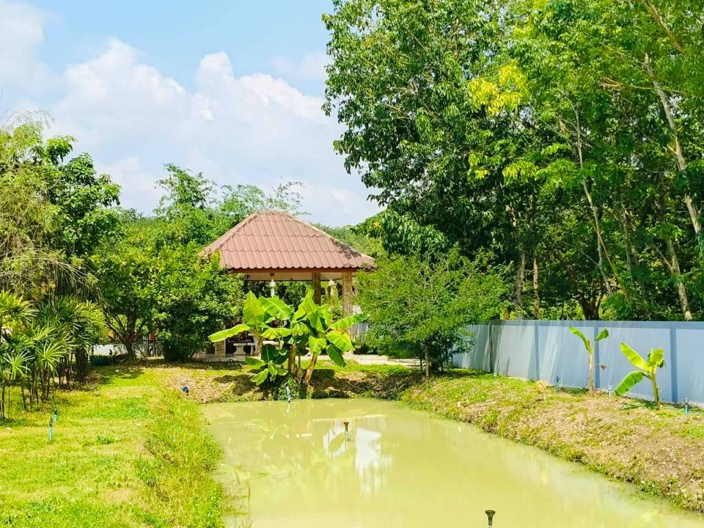 ครบจบในที่เดียว ทั้งบ้านพักอาศัย + พื้นที่สวน + สระเลี้ยงปลา
