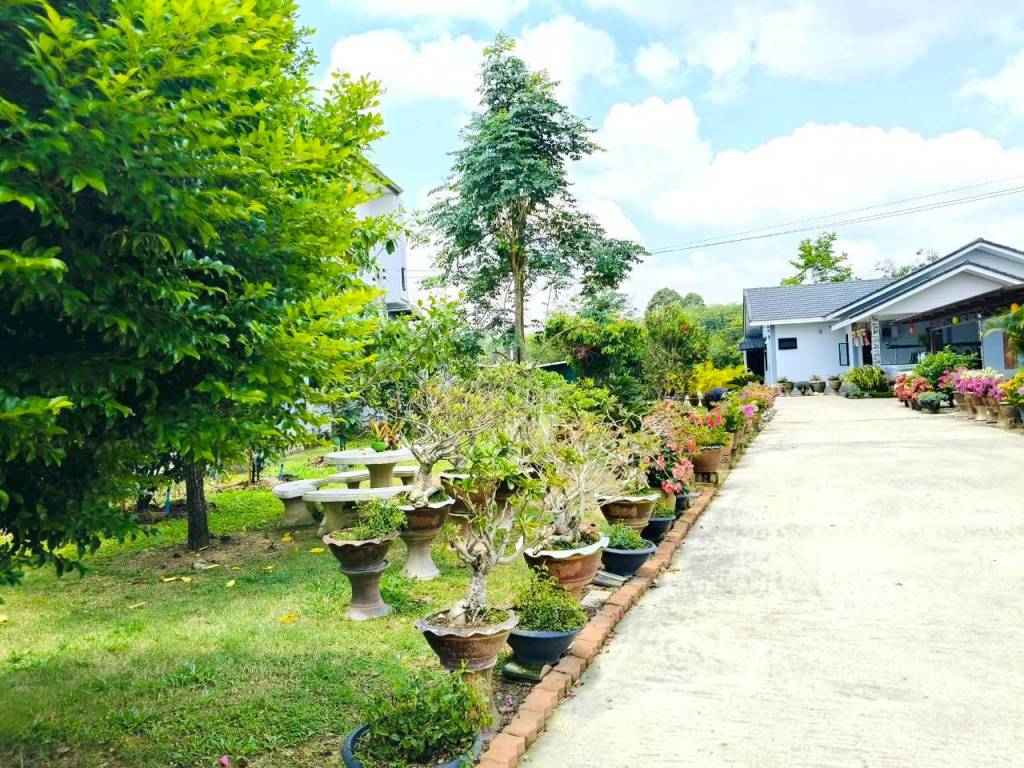 มีโซนปลูกต้นไม้ สวนร่มรื่น และสระน้ำสำหรับเลี้ยงปลา